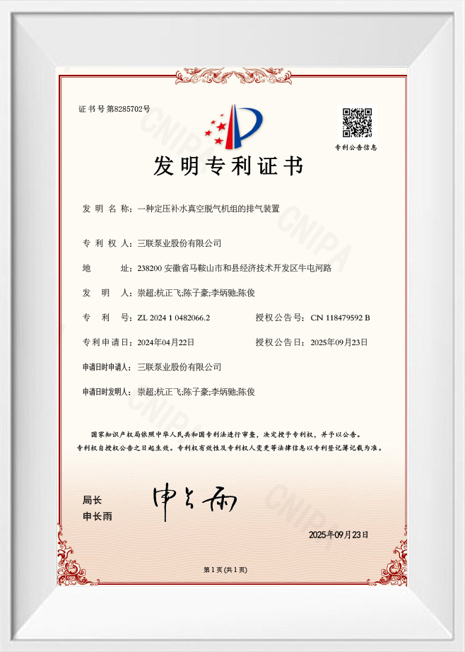 Un dispositivo de escape para una unidad de desgasificación al vacío con suministro de agua a presión constante.