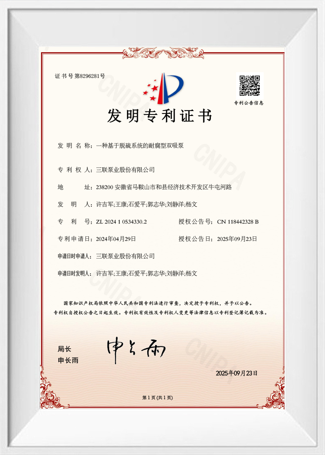 Una bomba de doble aspiración resistente a la corrosión basada en un sistema de desulfuración