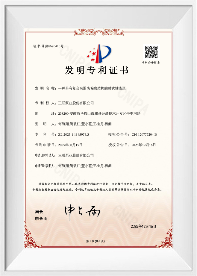 Bomba de flujo axial inclinado con lubricación compuesta y estructura antidesgaste excéntrica.